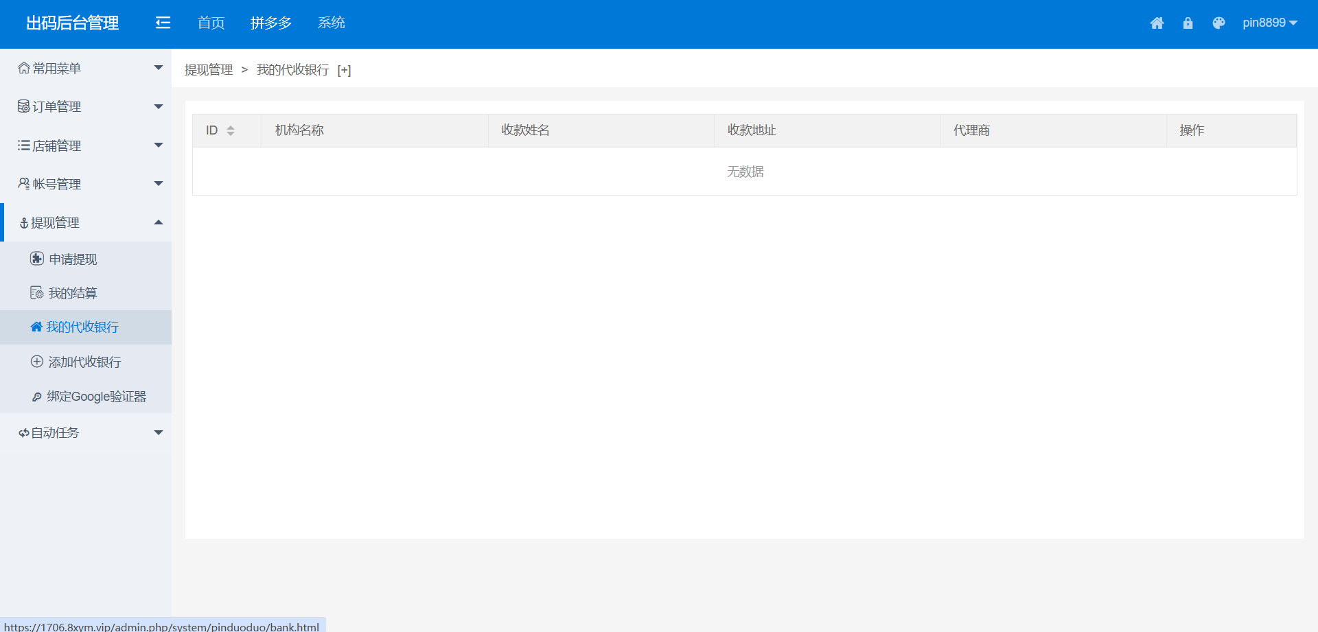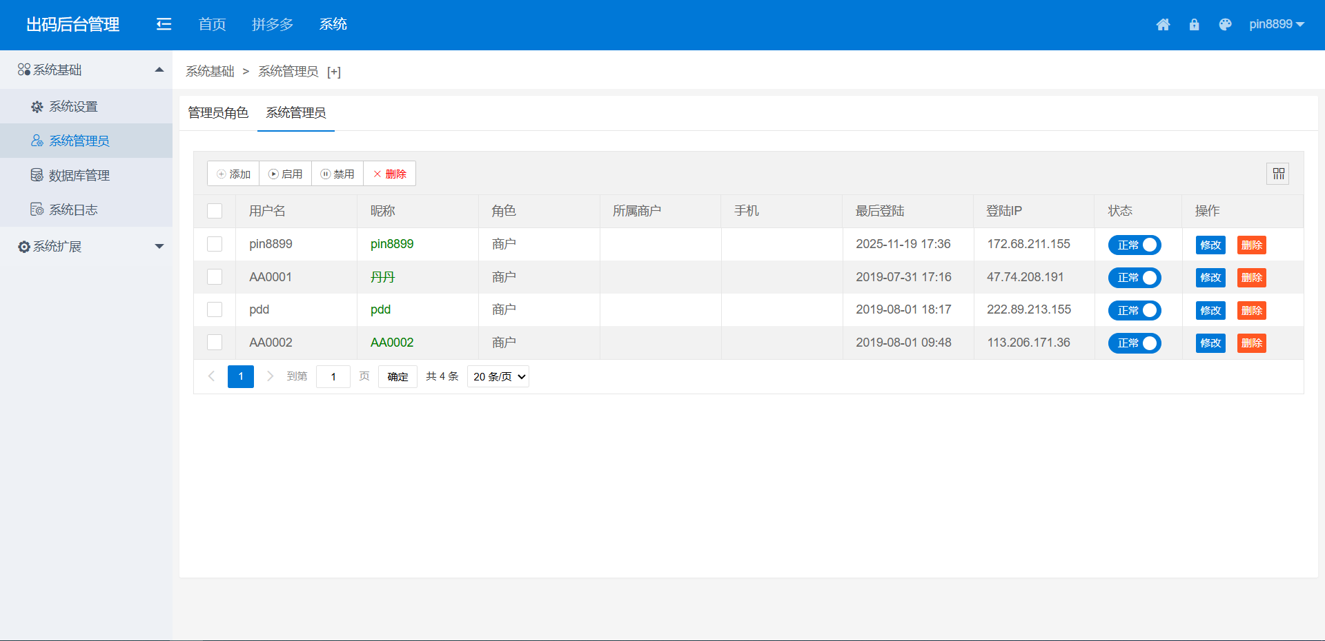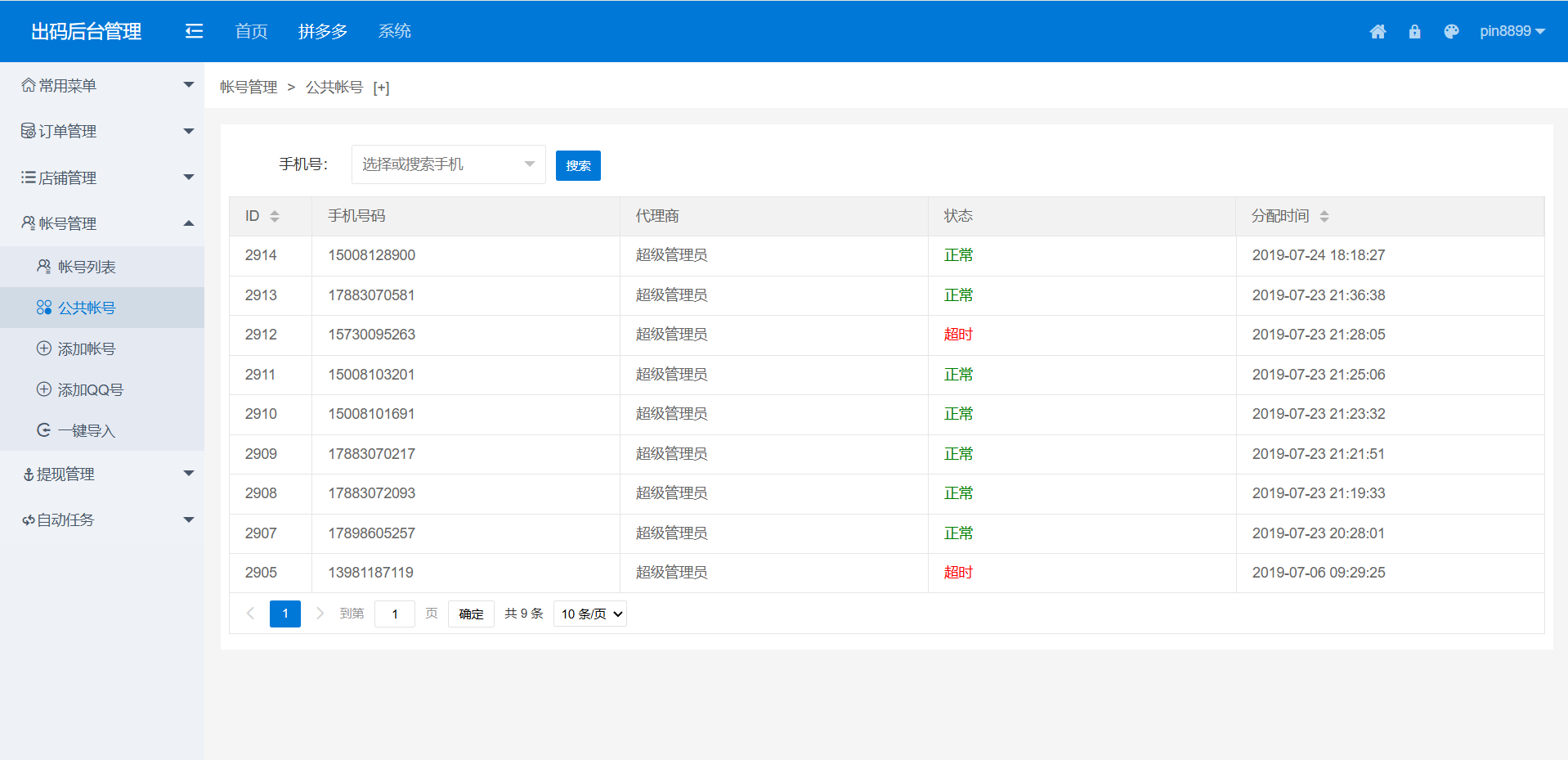 本系统为拼多多出码通道定制化支付解决方案,集成PC端实时监控、授权端程序与自动化运营模块。系统支持多账号轮询出码,实现支付流程全自动化管理,适用于四方支付业务场景。