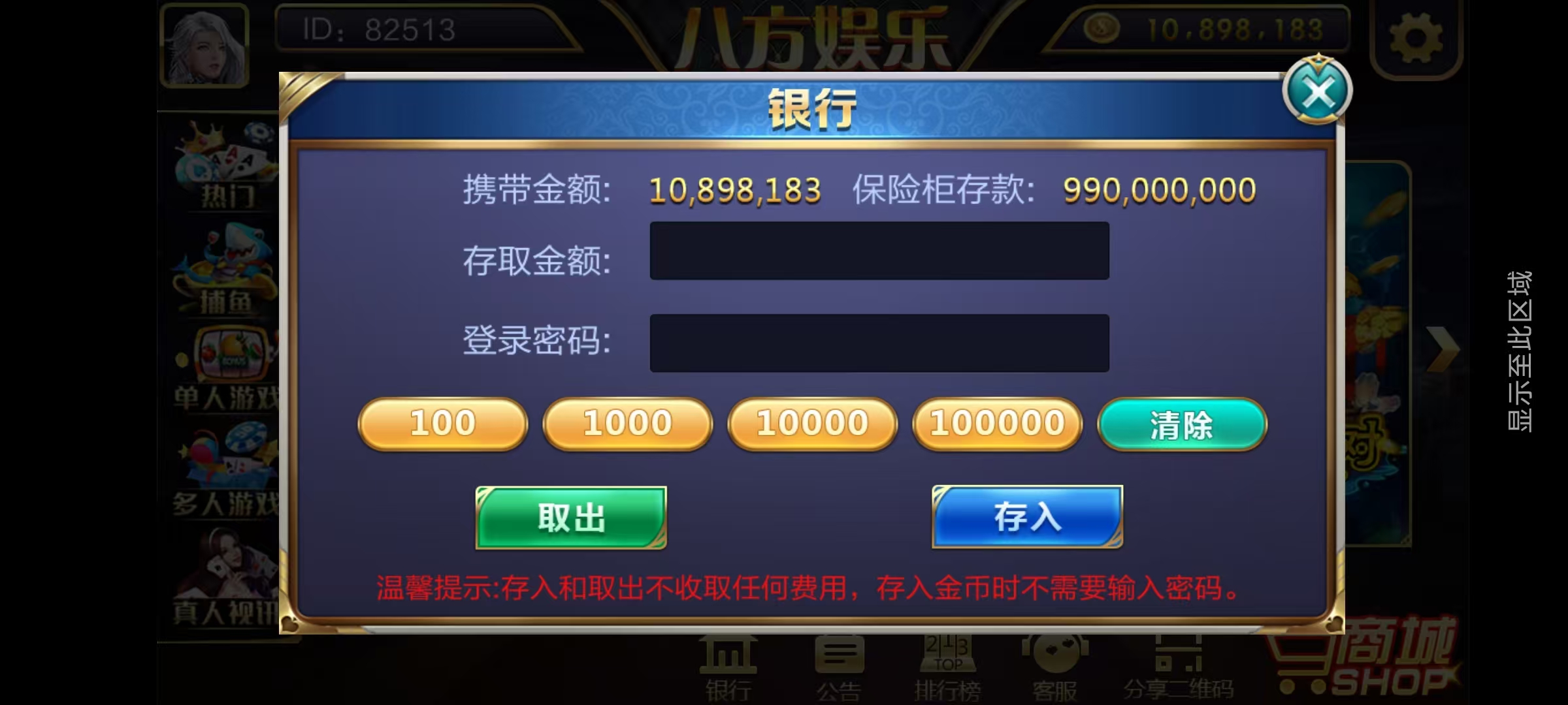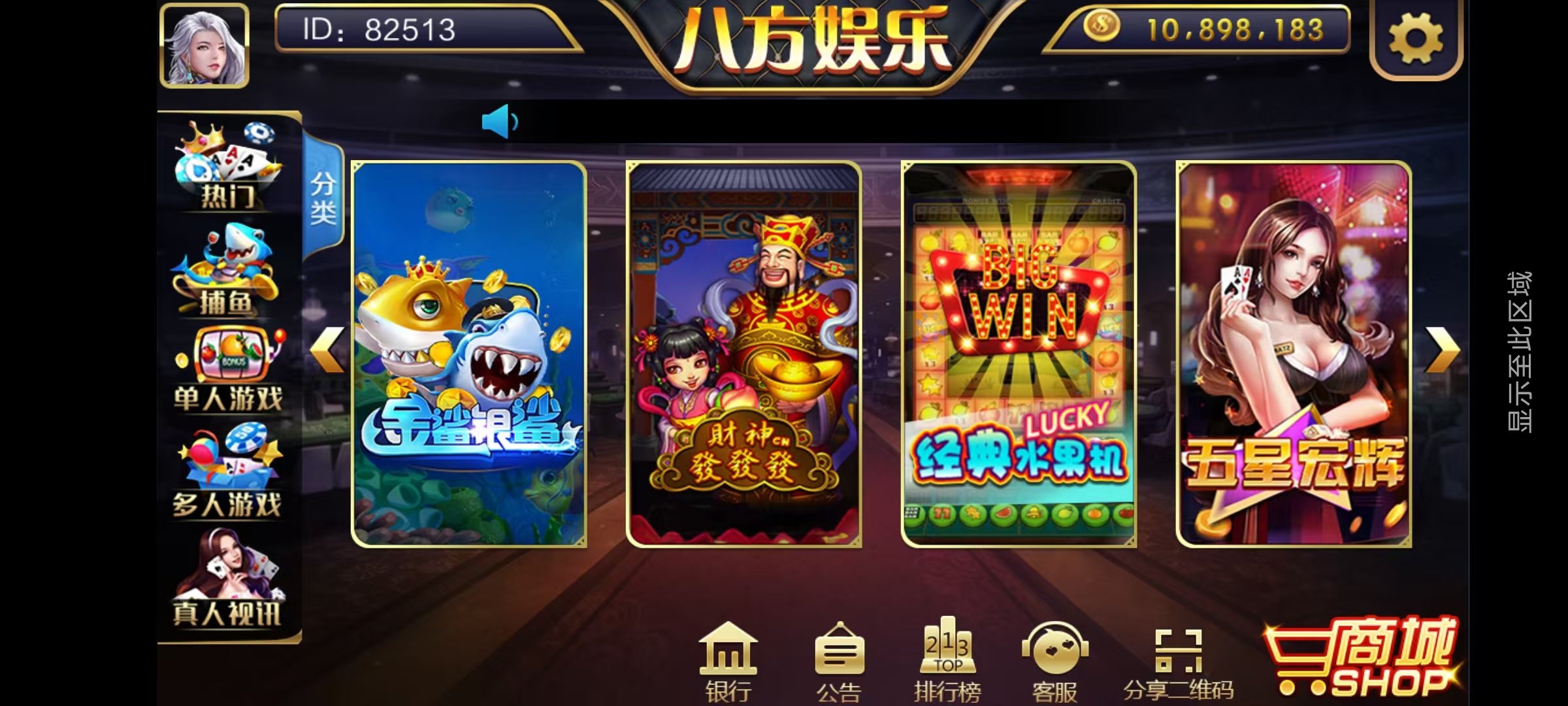 子游戏:金蟾捕鱼、李逵捕鱼、大圣闹海、摇钱树、抢庄牛牛、水浒传、狮王、龙虎斗、百人牛牛、百家乐、金鲨银鲨、财神发发发、经典水果机、五星宏辉。