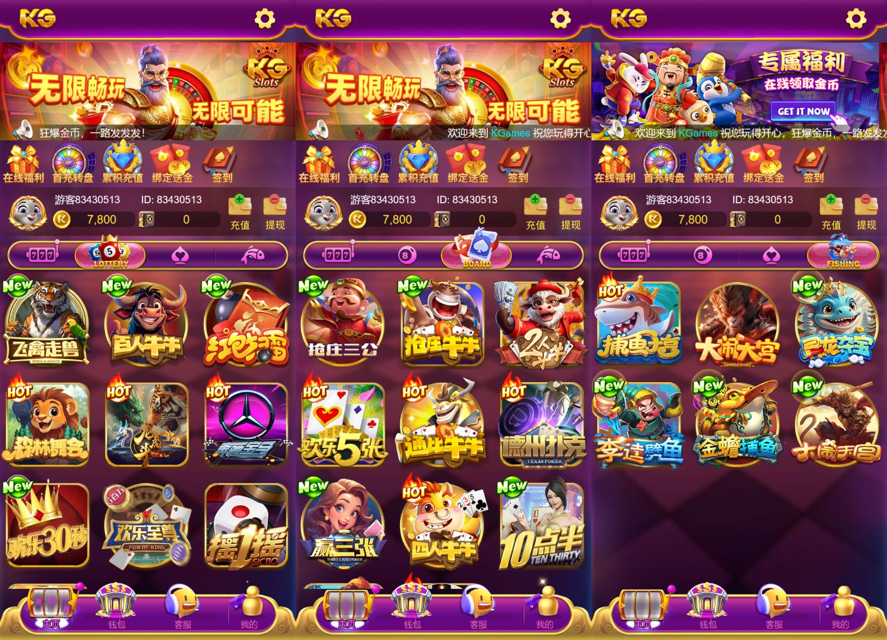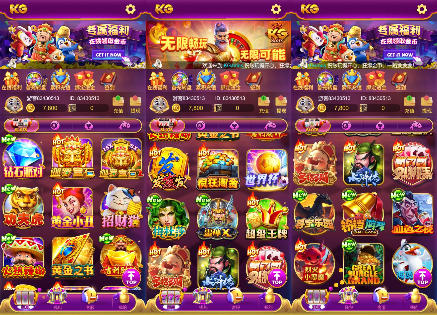 KG电子源码、非API接入的综合型游戏平台,覆盖 slots、PG、JILI、KG、捕鱼、棋牌游戏、百人游戏等多品类。该版本前端采用 Cocos Creator(经逆向分析),服务端与后台均为 PHP 架构,并提供双端版本(老端UI与新端UI)以适配不同用户偏好与运营场景。